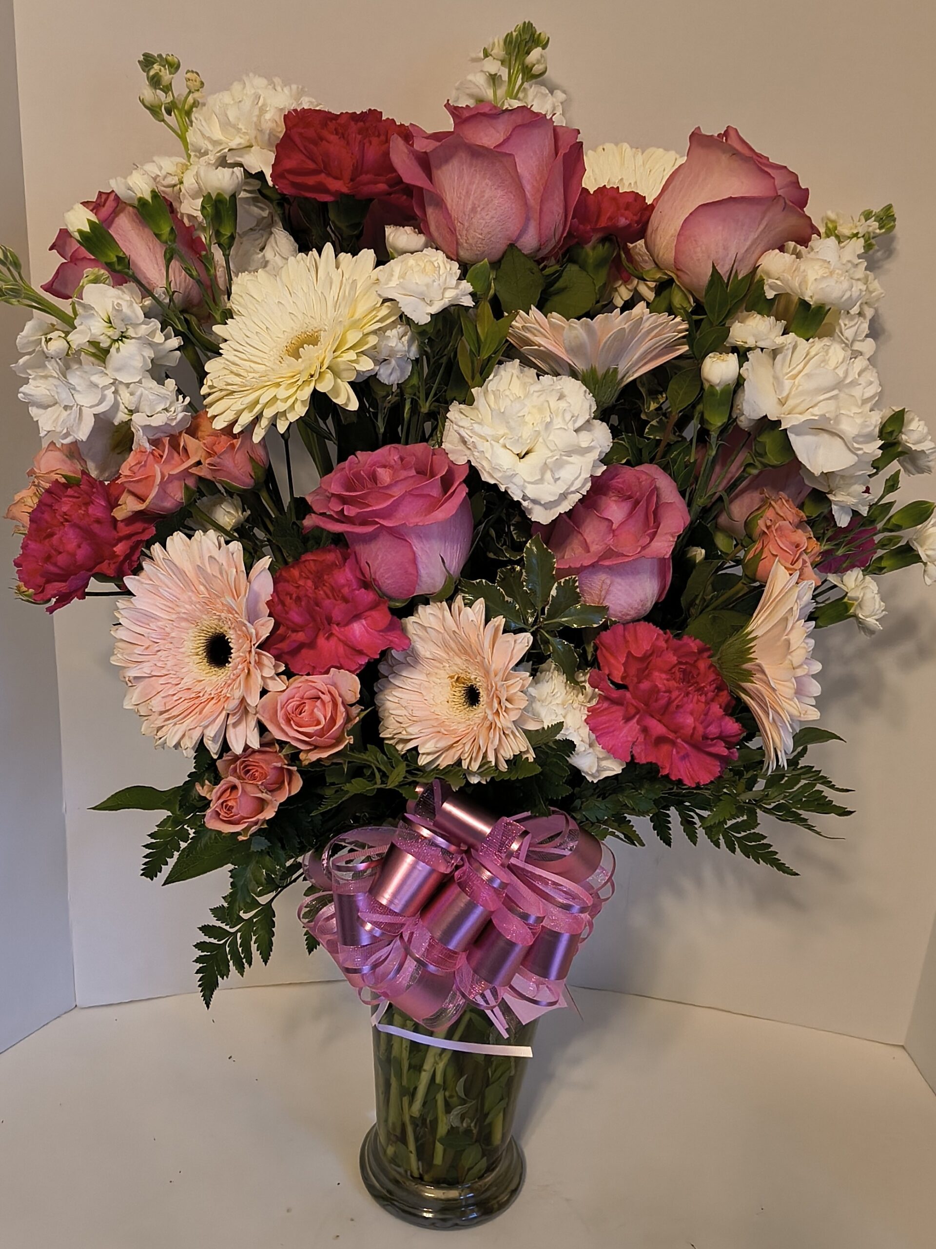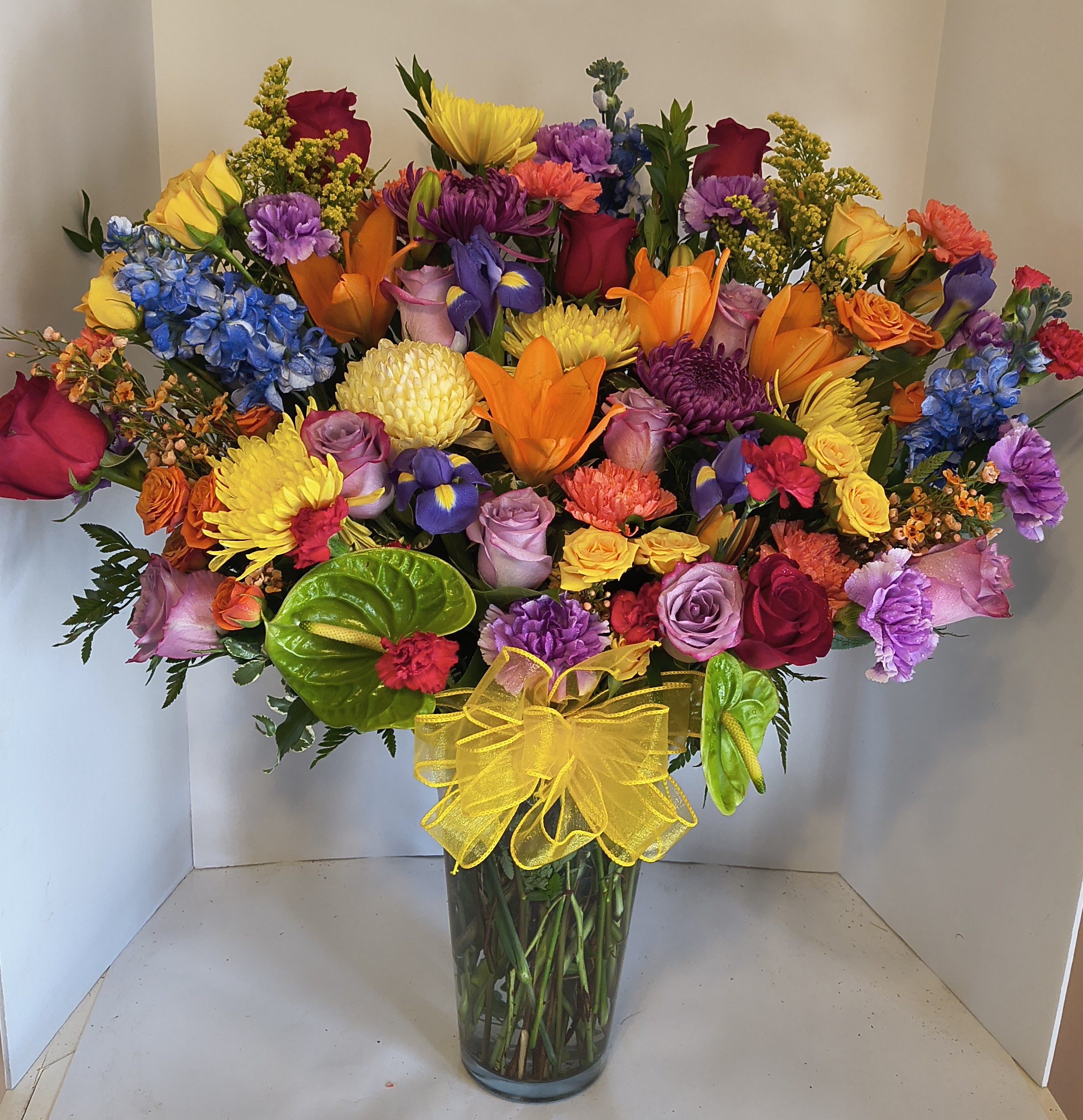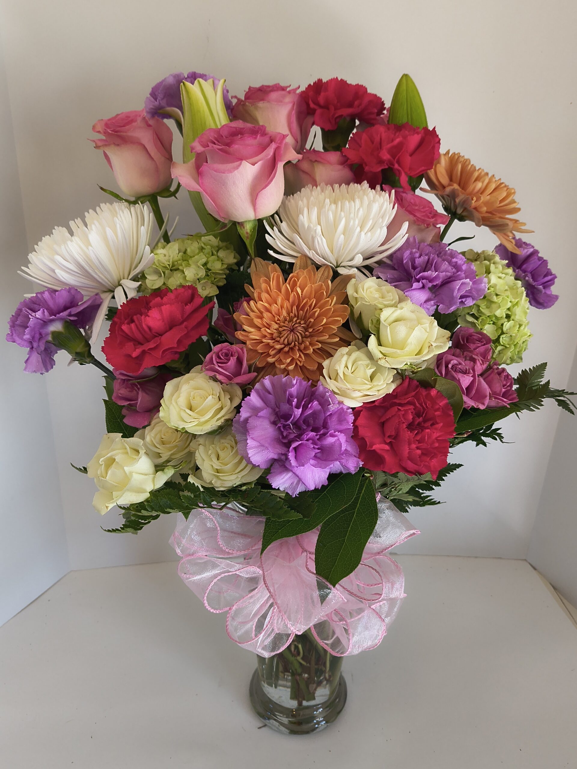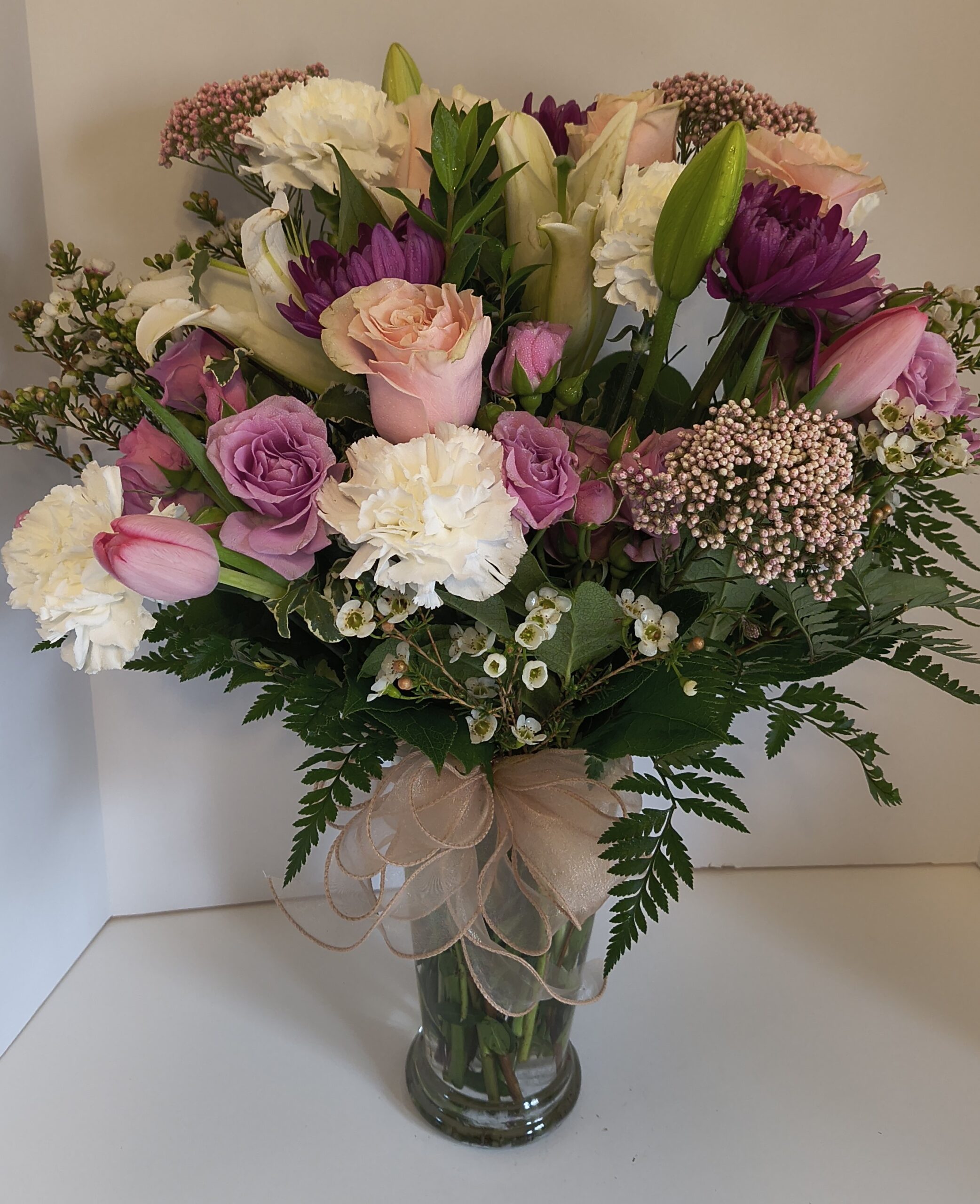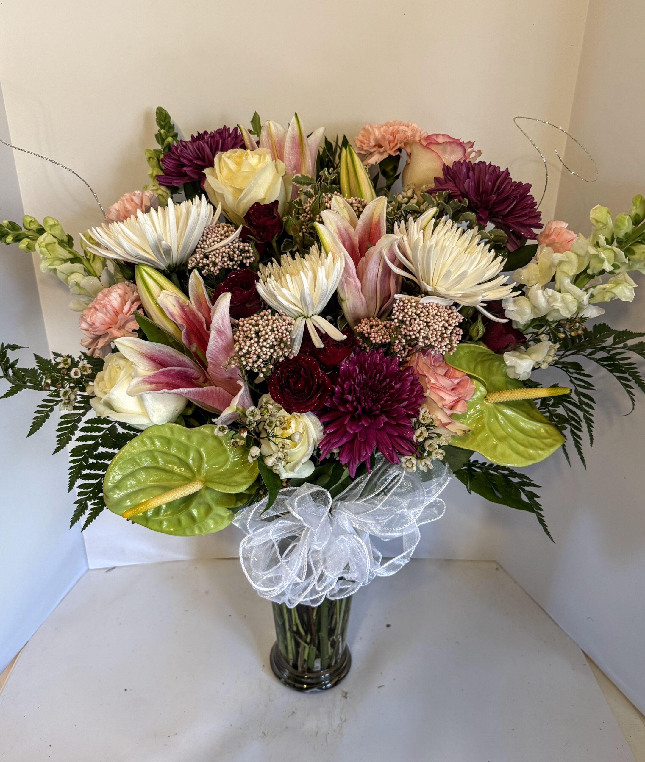 Flowers Used for Special Occasions – Stargazer Lilies, Oriental Lilies, Hydrangeas, Rose Lilies, English Roses, Peonies, Cala Lilies plus OthersArrangements To Include – Fancy Greenery, Large Bows, Quality Accessory Flowers or Others
