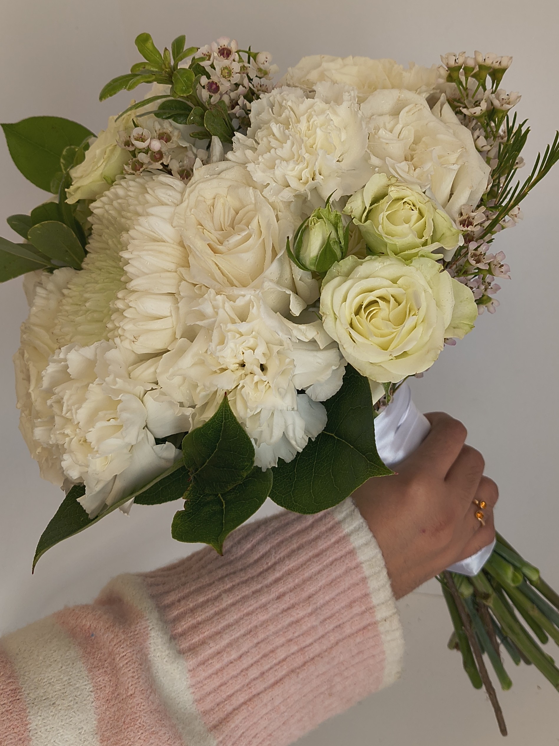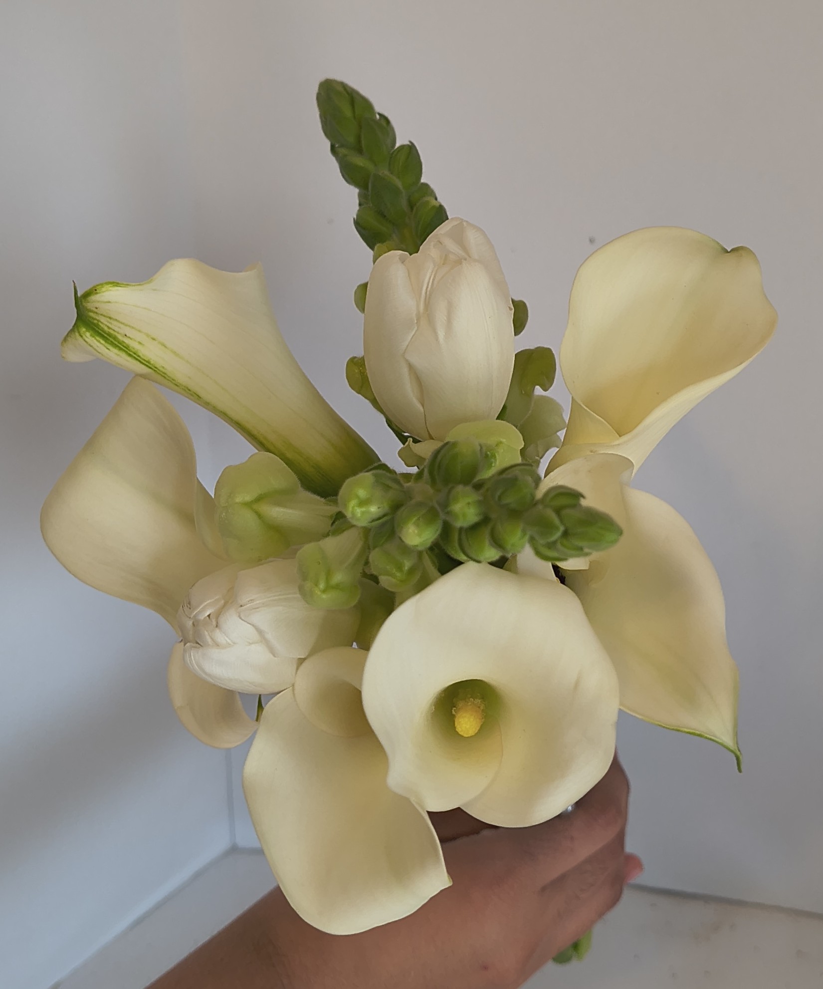 Wedding Bouquets – (Basic) $69 to $175 and (Cascading) $295 – $450 – Fresh or Silk; Maid-of-HonorBouquets – $39 to $59 – Bridesmaids Bouquets – $25 to $35 – Petals – $25 to $50 – Boutonnieres – $10 to $12 – Corsages (Dress) $35 and (Wrist) $39 to $59